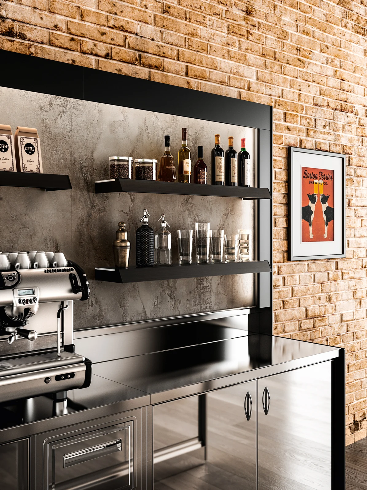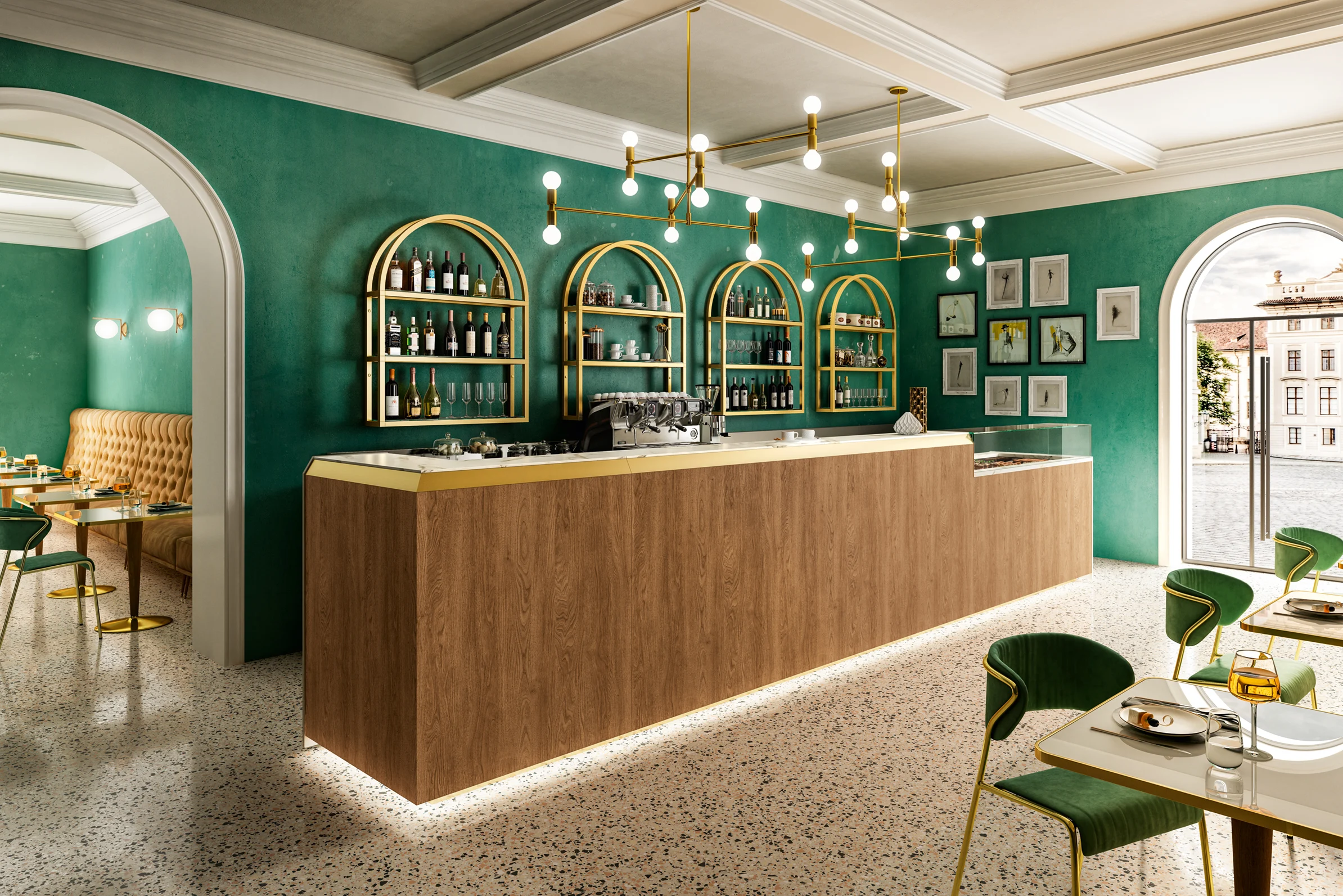 Les structures de la paroi arrière peuvent être soit des étagères en bois traditionnelles, soit la structure exclusive en aluminium « Alukuadro » de Frigomeccanica. La structure Alukuadro peut être équipée d’étagères en verre ou en bois, de bacs en bois, de projecteurs, et fabriquée dans la couleur RAL de votre choix ou en aluminium poli. Les dimensions peuvent être standard selon le catalogue ou fabriquées sur plan.