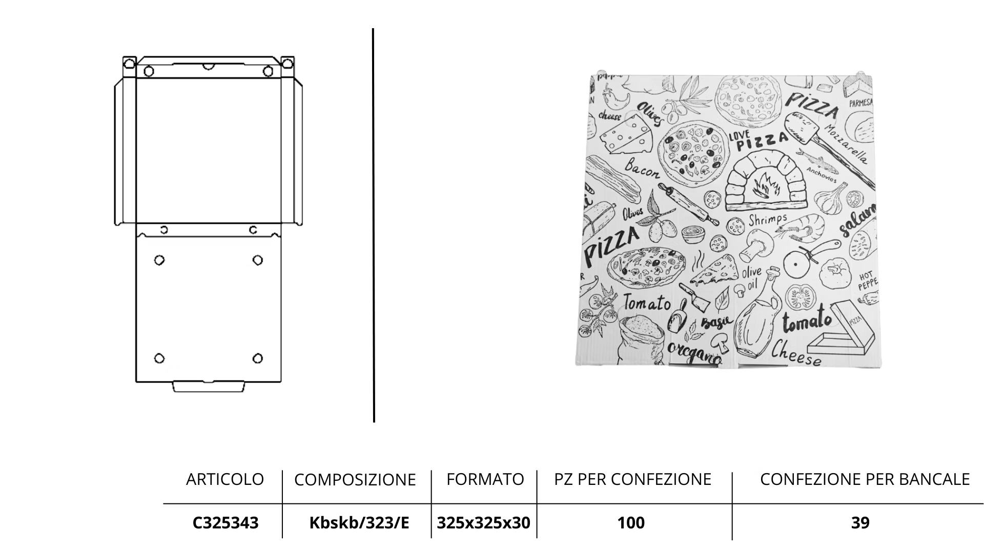 Cartone Pizza C325222 – 325x325x30 mm – PALLET 3900 stk – 39x100Stk