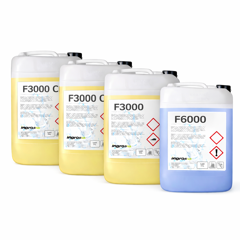 Set detergente lavastoviglie professionale per ristorazione (3x25kg + 1x20kg) – 3 x detergente F3000 CL + 1 x brillantante F6000